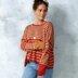 Claudine is a long sleeved oversized sweater. It features a 3 colour stripe pattern.