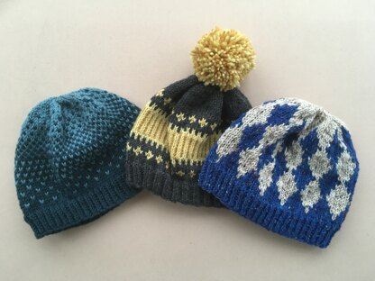 This modern fair-isle hat is a great ‘blank canvas’ for testing yarns and colour combinations. Use it as a swatch before you make the Clayoquot Cardigan, and you will have an adorable matching set!