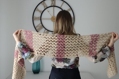 The Climbing Vines Shawl is a beautiful delicate lace shawl with strikingly easy 1 row stitch pattern only using chains and double crochet stitches. The shawl features sections of 5 rows with added Kids Silk throughout to spice up the stitch pattern with colour and cozy factor.
