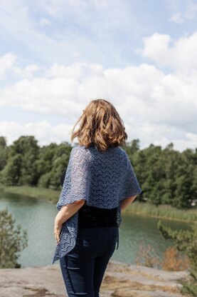 Cloud Gazing is a lightweight and airy crescent-shaped shawl. You work it from the top down with one skein of fingering-weight yarn.