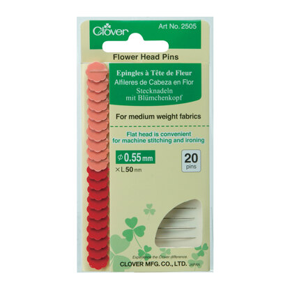 20 pins / card. 0.55 x 50mm. Long for holding together many layers of fabric. Flat head convenient for machine stitching. Head not heat resistant, do not iron directly.
