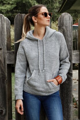 Upgrade your loungewear game and join the club with this sophisticated take on the classic hooded sweatshirt. This top down raglan wardrobe staple features a lightly shaped hood with an i-cord drawstring and front kangaroo pocket.