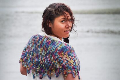 A chunky weight shawl worked sideways with garter stitch, bias lace and simple triangle edging. This 2 skein shawl is the perfect pick for a quick and easy hand-painted shoulder warmer.