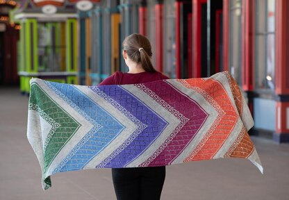 Worked on the bias, this wrap creates lovely drape with colorful impact that is as fun to knit as it is to wear.