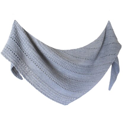 Cobblestone is worked in one piece from the top right corner across and downwards. Two increases at the beginning and one decrease at the end of every RS row creates an asymmetric triangular shape.