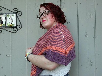 Cockle Shells is inspired by visits to the seashore. Fingering-weight yarn knit at a larger gauge creates a loose, breezy fabric, and the striped body is finished with lace inspired by its mollusk namesake. This small shawl is perfect for collecting shells on the beach, sitting around the fire pit on a cool summer night, or even just keeping the air conditioning off your neck and shoulders in the office.