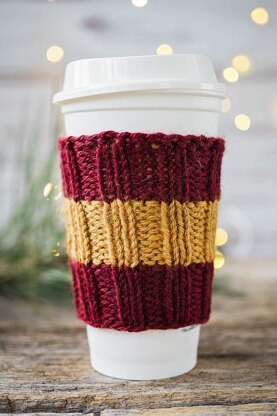 The cup cozies are the perfect stash buster project for all those little scraps you have. The project weighs in at only 16g worth of yarn, and uses a DK or light worsted weight of yarn. This is a quick knit project and perfect stocking stuffers. Mix any two colors of yarn to represent your favorite sports team, University or House. It's completely up to you!
