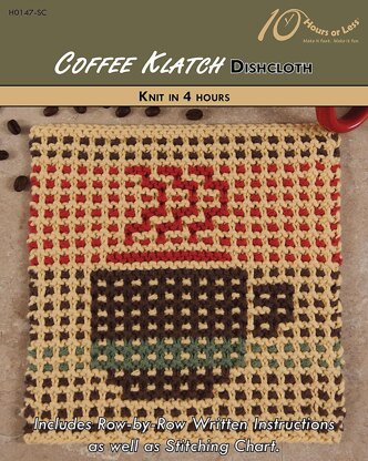 Java lovers rejoice with this bold and lively knitted dishcloth! Worked with one color at a time, the simple knit-and-slip pattern automatically forms a steaming Cup o’ Joe right before your eyes. In a kitchen or in a gift basket, this colorful cloth is the perfect choice for a coffee connoisseur.