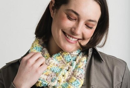 Wondering what to make with that skein of chunky weight yarn in your stash? This simple cowl takes advantage of a fun stitch and lets the yarn do the rest of the talking! Use variegated yarn for a subtle finish or go bold with a block colour to create a real statement piece. Made with just one skein, this cowl is a super fast project to hook up - making it the perfect fashion accessory.