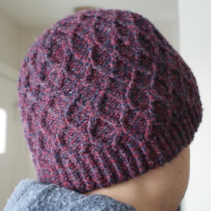 I designed this hat to go with my husband's new gloves, incorporating the same bavarian twisted stitch pattern. I enjoyed working the cables into the sharply defined crown.