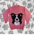 Knitting pattern for a Chunky sweater featuring a cute Collie Dog for children aged 4 to 11 years. Knitted in Chunky (12 ply) Yarn so grows very quickly. Large, coloured intarsia chart to follow for the dog's head and the pattern is colour coded for the different sizes.