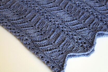 Colne is a delicate rippling ring of lace for your neck. Knit in the round this cowl can be worked to any length.