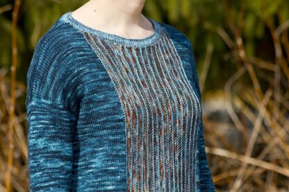A slightly oversized A-shaped pullover with dropped shoulders and the front with vertical stripes to flatter your body. Choose your favorite colors: Play with solids and hand dyed or go all natural!
