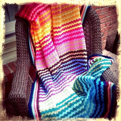 The pattern can be used to make an afghan or a scarf and includes recipe information for customizing your project including making different sizes of finished objects or using different weights of yarn.