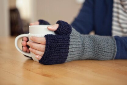 Calling all partial skeins of bulky yarn! De-stash a little with this TWO-pack pattern. Colorblock Mittens includes two patterns: regular mittens using three blocks of color and fingerless mitts using two blocks of color. You can read more about the story behind the mittens/mitts [here][1].