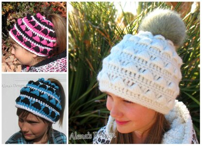 Contrasting colored pattern makes this hat look attractive, stylish, and extremely charming. With this pattern you can make a standard Beanie Hat, or a Ponytail Hat. You can also add a Faux Fur Pompom for a more stylish look. As pictured above, you may choose a solid color, or utilize a colored hat.