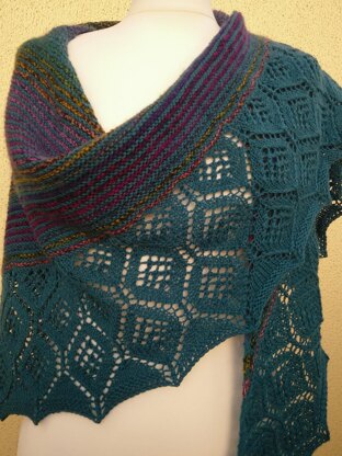 Colorful Soul shawl is worked down and out from the center of the top edge, and it can be worked in two sizes. Shaping is done by working increases at the beginning and ending of each row and around the center stitch.