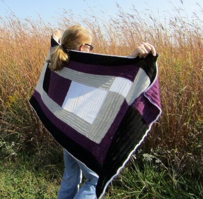 This large rectangular wrap starts with a long center striped strip, with stitches picked up along the outer edges. My piece used the four colors found in the Ace Pride Flag.