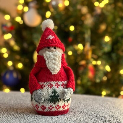 Colorwork Santa is coming to town and this guy is magical. He stands 7.5 inches tall (with his hat) and all pieces are knit in the round, except the beard.