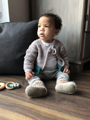 The cardigan is crocheted from the top down and has a tie front, so no need to sew seams or create button holes. Its a lovely quick easy make.