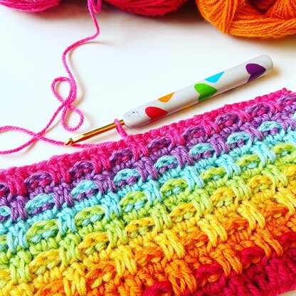 The Colour Crush Cowl is the perfect addition to any winter wardrobe; ideal for throwing on under your coat to add a pop of colour, keeping you nice and cosy at the same time! A simple pattern repeat means they hook up in no time; the perfect handmade gift!