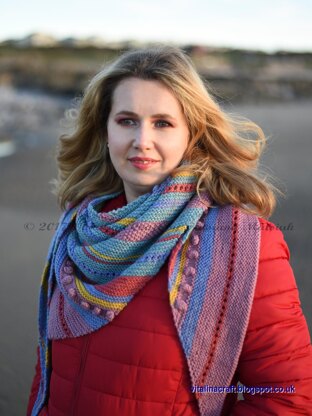 Colour Fantasy Shawl is a quick and easy garter sideways triangle shawl. The simple garter stripes are combined with bobbles stripes and simple eyelet lace. It is a great way to utilise all your left over yarns as every stripe can be different colour. Let your fantasy unwind!