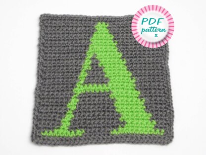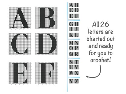 Crochet alphabet pattern pdf with 26 letter square charts from A to Z – perfect for personalised gifts! Spell out words or create customised monogram effects using the capital letter graphs.