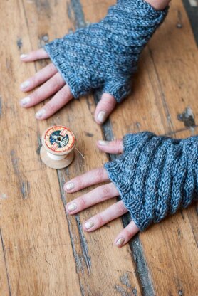 The winding cables of these fingerless mitts echo a columella, the central coil of a spiral snail shell. They're knit from the knuckles down with lots and lots (and lots!) of cables, for a huge dose of texture and a comfortable, stretchy fit. The cabling is reversed between the left and right mitts for a neat, mirrored look.