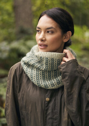 Add both practicality and style to your winter outfit with this versatile cowl from Knox Mountain Co. Knitted in the round, this slip stitch cowl uses two shades of the Kid Classic, a lovely soft lambswool blend that is perfect for cosy winter accessories.