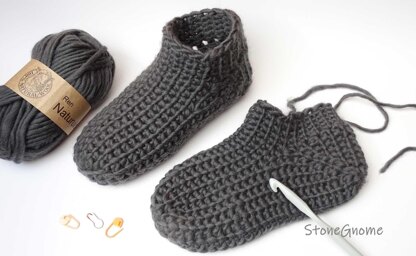 These cozy footies are designed for warmth and comfort, perfect for chilly days at home. The stretchy stitch pattern ensures a snug fit for a range of foot sizes. Whether using a bulky yarn for extra plushness, two strands of sport/fin yarn or a fingering-weight yarn with the 3-strand technique, your feet will feel fantastic!