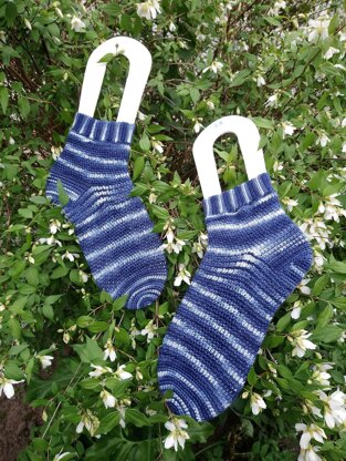This is a crocheted sock pattern for european size 38/39. It’s build up like a knitted sock! There is a heelflap and gusset.