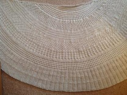 Compulsion is an awesomely huge multi patterned not really 1/2 Pi shawl worked in WORSTED weight yarn. The first in a series of "Obsessive Knitting Disorder" Mystery KALs being offered on the Criminal Knits group in 2014 [link text][1]