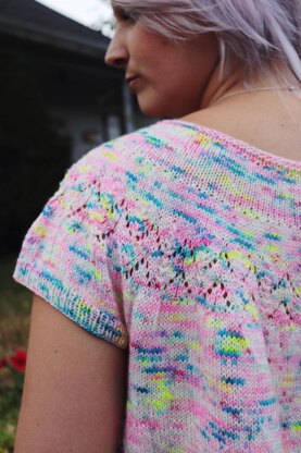 This pattern was made with 9-12” of positive ease designed in (so please choose your bust size and add 9-12” for finished measurements), making it the perfect flowy oversized top for layering. With a wide scoop neck, leaf-like lace interspersed in the yoke, and the majority of the body done in stockinette - this pattern is sure to keep your brain in play with some trickier parts, and become a soothing knit for the rest.
