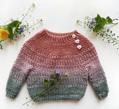 The Confetti Pullover is a celebration of childhood and color. It features a fading of color that resemble confetti falling. It’s a round yoke sweater worked seamlessly, mostly in rounds. The Baby version comes with an opening to enlarge the neck for easier access. The stitch used throughout makes the fabric warm, yet very light - you can even use cotton yarn for a Spring sweater. The pattern comes with a suggested color transition of 3 different colors, but you can use as many colors as you want. Perfect for using up your yarn stash!