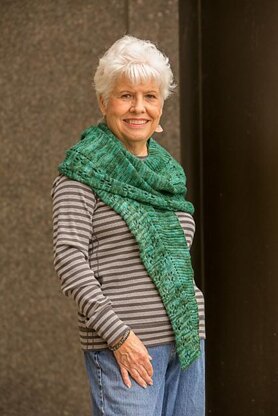 This oversized yet cozy and elegant shawl is inspired by nature and the world around us. The beautiful green hues of the yarn are reminiscent of the last days of green grass on a crisp fall day while yarnovers and decreases create little lacy Paw Prints that meander along the edge of the shawl.