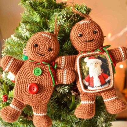 This is a no-sew crochet pattern, and it provides options to make the gingerbread ornament with or without a frame.