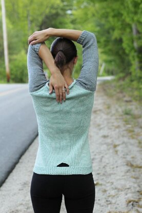 Crisp, fresh mint meets soft grey along clean lines. An optional cutout on the low back provides a gentle breeze without overexposing.