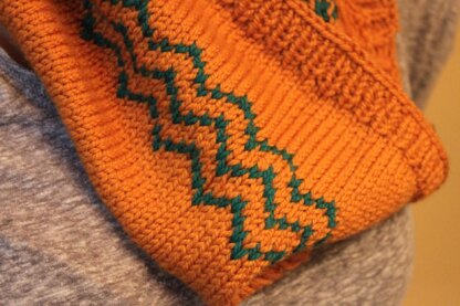 The Copper Mountain Cowl is a versatile accessory well suited for fall. Not quite a double-loop cowl, but longer than the average single-loop cowl, it’s a snap to shorten or lengthen for knitters who prefer theirs one way or the other. The color work keeps an otherwise boring stockinette cowl fun, and is perfect for using up scraps of yarn.