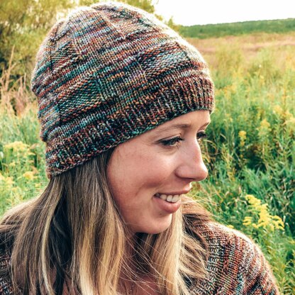 The Copper Rain Hat is both fun to make and chic to wear. Diminishing purl blocks are interspaced between knitted sections, making this fast and enjoyable to knit up. Wear it with the purl-blocks up or turn it inside out to make the knit blocks pop! It's a great accessory to wear with your Copper Rain cardigan or on its own.