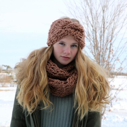 Stay cozy and trendy in our Copper Twist Headband and Infinity Set. Long double crochet stitch is used to create a drop stitch look making the set soft and squishy to the touch. Twist join on headband creates a seamless design. Make the complete set in an hour or less! Designed in Sugar Bush Yarns Chill a luxurious quality 100% merino yarn.