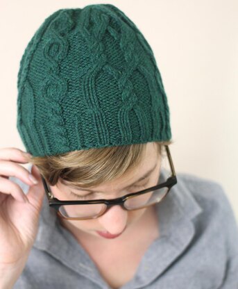 Cables cover a reverse stockinette background. Both charts and written directions are provided. Worked in a worsted weight yarn, this hat works up quickly in just over 60 rounds.