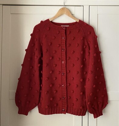 A popcorn / bobble stitch is worked across the whole cardigan.