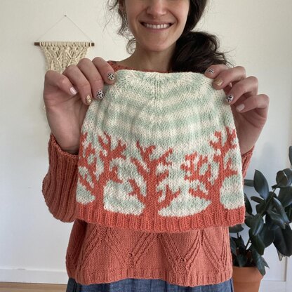 The Coral Reef Cap was inspired by a documentary I watched on the risks to our oceans reefs from climate change. The cap features coral motifs set on a subtle striped backgrund. This is a great stash- buster project requiring minimal yardage and endless color possibilities! Designed in 3 sizes: Youth, Adult Small, and Adult Large. The hat is knit up in On The Round Plush Single hand-dyed yarn, a super soft, fingering weight, single ply merino yarn. Wear yourCoral Reef Cap to the beach or anywhere to share your love for Earth’s oceans.