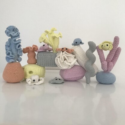 This is a PDF pattern with step by step instructions (with pictures) detailing how to make the toy set. It includs instructions for the 6 animals, 6 ocean plants, and 6 stone blocks. I had a lot of fun creating this and hope you do too!