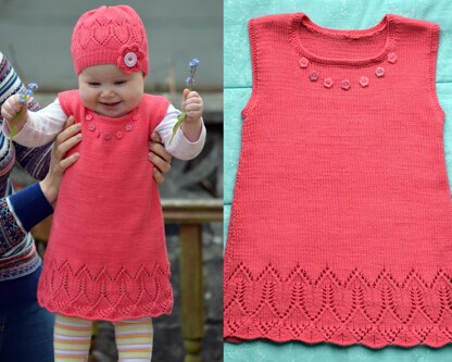 This knitting pattern is for my Coralline Flower Tunic. This knitted tunic with pretty lace pattern is stylish and beautiful garment for your little princess. I made it in beautiful coral color and decorated the neck line with tiny flower shaped buttons in two matching colors.