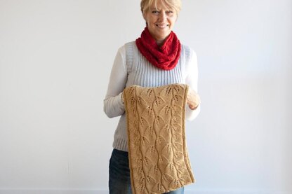 Introducing Corinne, an attractive wrap for the shoulders (or cowl for the neck), textured with leafy lace. It's worn well both inside or out, providing warmth with style. Worked lengthwise, the dimensions of its grafted loop are easily modified by row count or gauge to suit preferences of size or purpose. The short rows at its upper edge taper lines for a sleeker fit. You’ll find Corinne to be a fun and quick, multi-season project. Great as a gift too – surely a welcomed addition to any wardrobe. Enjoy!