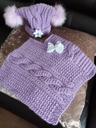 This pattern contains instructions for a Poncho and Hat to fit 6 months to 7 years approx. This poncho is made in two rectangular pieces and joined together. Because there is no shaping and it is an 8 row repeat it should be fairly straight forward for a beginner.