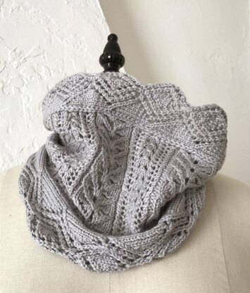 This pattern uses vintage stitch patterns (Bee Stitch and Honeybee Lace Stitch from Barbara Walker) to create a lightweight, lacy cowl. Work it with or without the lace edgings.