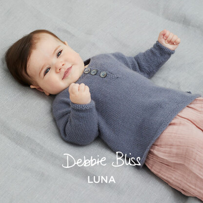 Cosmo is a sweet, long-sleeved tee with little buttoned placket that would look adorable in any of the Debbie Bliss Luna shades. A moss stitch border edges the hem, cuffs and placket, in classic Debbie Bliss style! The softness of cashmere is perfect next to baby skin, and it's a breathable fibre, so it regulates temperature too.