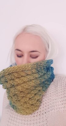 A beautifully snuggle cowl. Perfect for above or below the collar of any coat, making it great for even cooler weather.